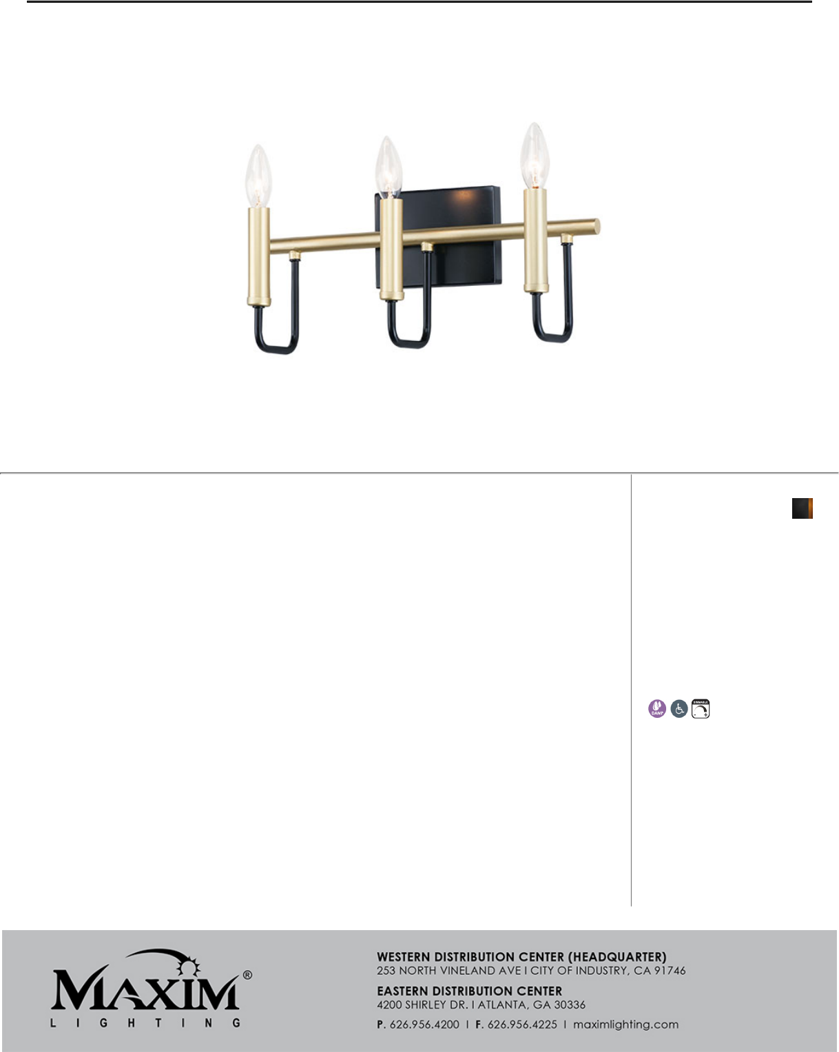 BULB : 3 x 60W (NOT INCLUDED), 180W Total