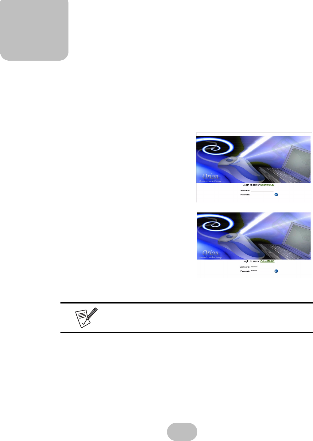 • The default user name is ‘nasroot’.