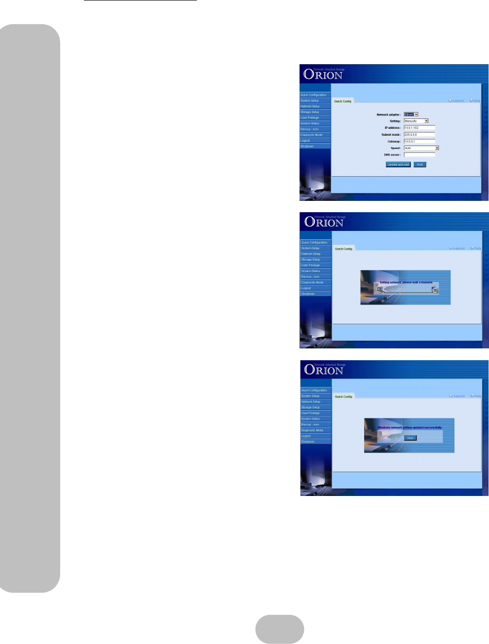 - Use this function to shutdown the Orion 410ST NAS System properly.