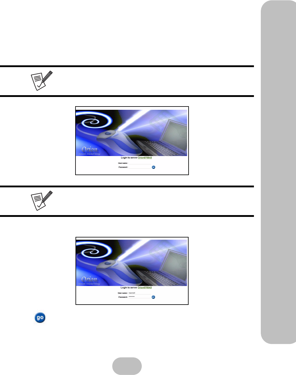 • Once the Orion 410ST NAS System has booted, enter the IP address in your web browser