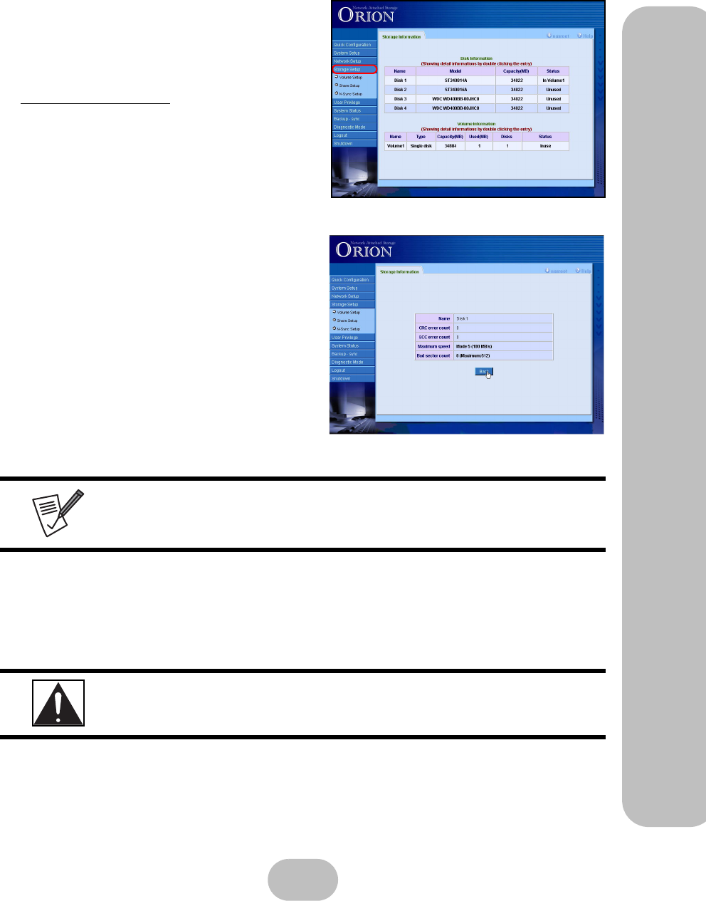 - This symbol is used to remind users to pay attention to important descriptions regarding usage and maintenance (repair) or additional important information related to this Orion 410ST NAS System.