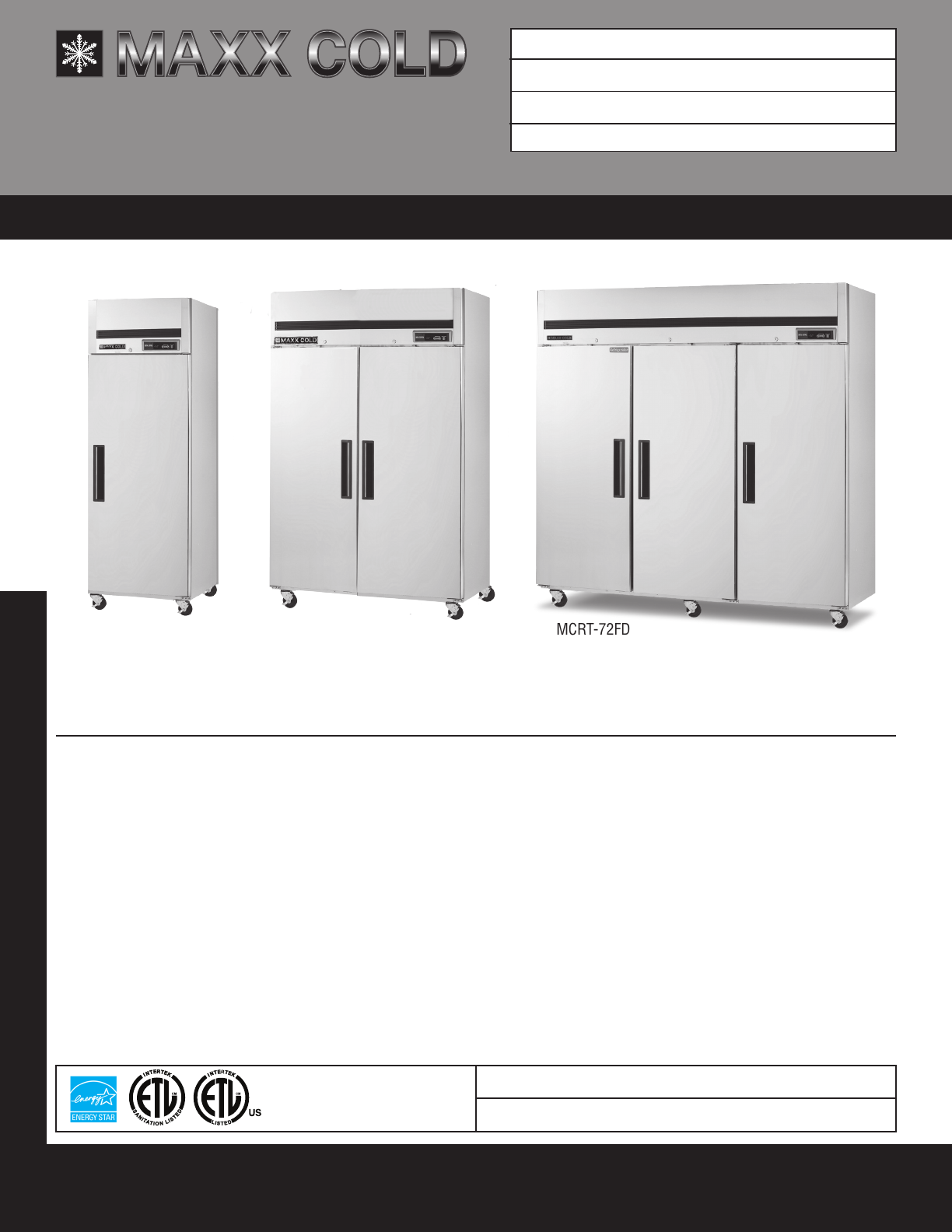 MCRT-23FD / MCFT-23FD / MCRT-49FD / MCFT-49FD / MCRT-72FD / MCFT-72FD TOP MOUNT REACH-IN REFRIGERATION