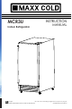 TECHNICAL SPECIFICATIONS Model Number: Description: Electrical Input: Current Rating: Unit Dimensions: MCR3U Indoor Refrigerator 115VAC ~ 60Hz 2.0A 14⅝”W x 24⅜”D x 33½”H 371.475 mm W x 619.125 mm D x 850.9 mm H Unit Weight: Ambient Temperature Range: Compartment Temperature Range: 69 lbs/31.29kg 25ºF - 100ºF /3.8ºC -37.77ºC 35ºF - 50ºF / 1.66ºC - 10ºC Energy-Saving Tips • • • Do not place the unit next to a heating vent, a range or in direct sunlight.