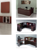 Curved Desk, Curved Desk Extension, Bridge, Credenza, Hutch, Pedestal, Low Wall Cabinet and Quarter Round Bookcases in Mahogany.