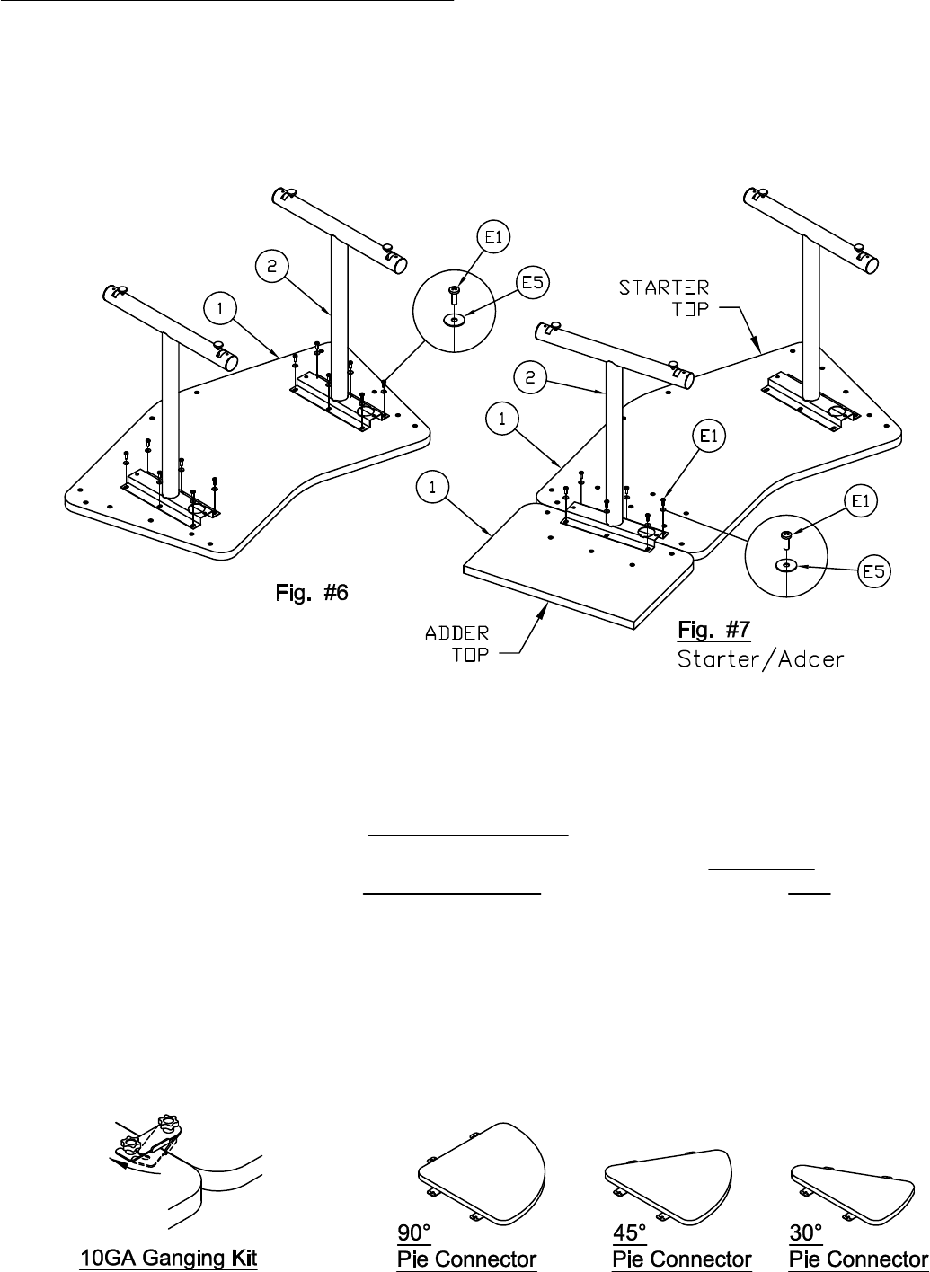 8. Attach Leg (2) onto Starter/Adder Top using three Screws (E1) & three Washers (E5) for each top. See Fig #7