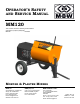 OPERATOR’S SAFETY AND SERVICE MANUAL MM120 This manual covers the following serial numbers and higher for each model listed: MM120 . . . . . . . . . . . . . . . . . . . 7070040 MORTAR & PLASTER MIXERS MBW, Inc. MBW (UK) Ltd. MBW FRANCE S.A.R.L. 250 Hartford Rd • PO Box 440 Slinger, WI 53086-0440 Phone: (262) 644-5234 Fax: (262) 644-5169 Email: mbw@mbw.com Website: www.mbw.com Units 2 & 3 Cochrane Street Bolton BL3 6BN, England Phone: 01204 387784 Fax: 01204 387797 Z.A.