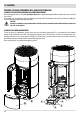Now loosen the four screws “y”, remove plate “n” and gasket “o”. Use the nozzle of a vacuum cleaner to remove any ash and soot that may