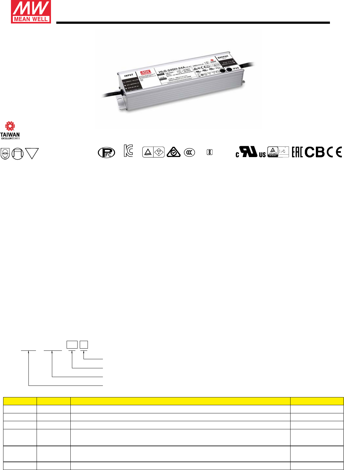 current output. HLG-240H operates from 90 305VAC and offers models with different rated voltage ranging~