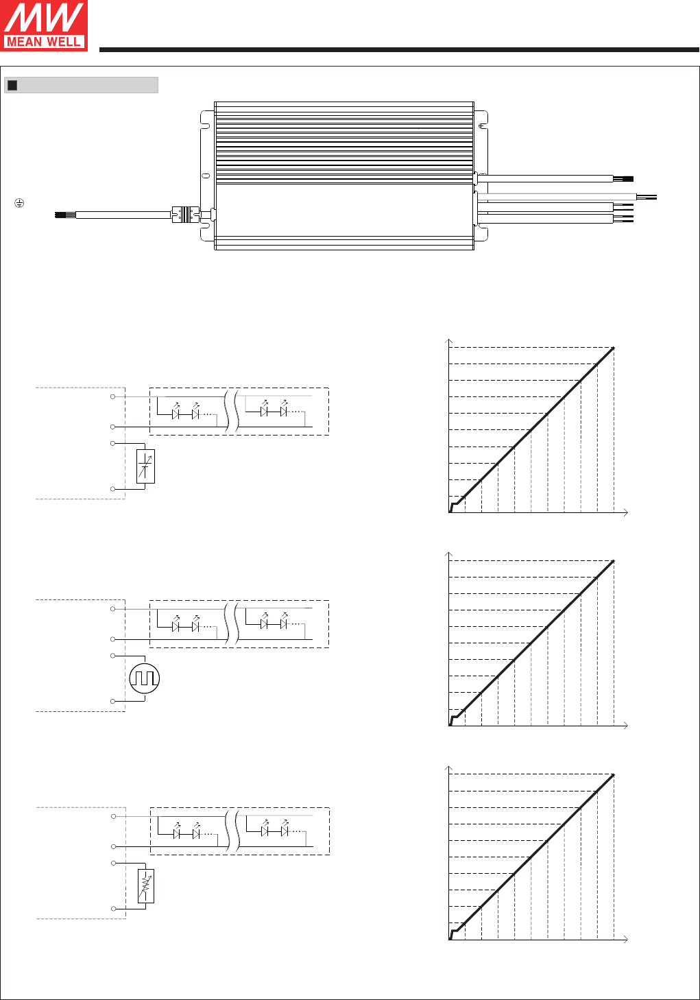 2. The output current could drop down to 0% when dimming input is about 0k or 0Vdc, or 10V PWM signal with 0% duty cycle.Ω