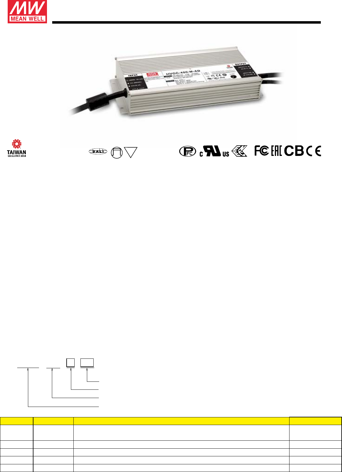 HVGC-480 series is a 480W LED AC/DC driver featuring the constant power mode and high voltage