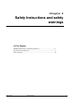 Chapter 2 Safety Instructions and safety warnings In This Chapter Multilingual Warnings and Warning Definitions ............................................. 6 Important Safety Instructions ............................................................................ 8 Safety Warnings ................................................................................................ 10 May 17, 2011 Version 1.6.2a.