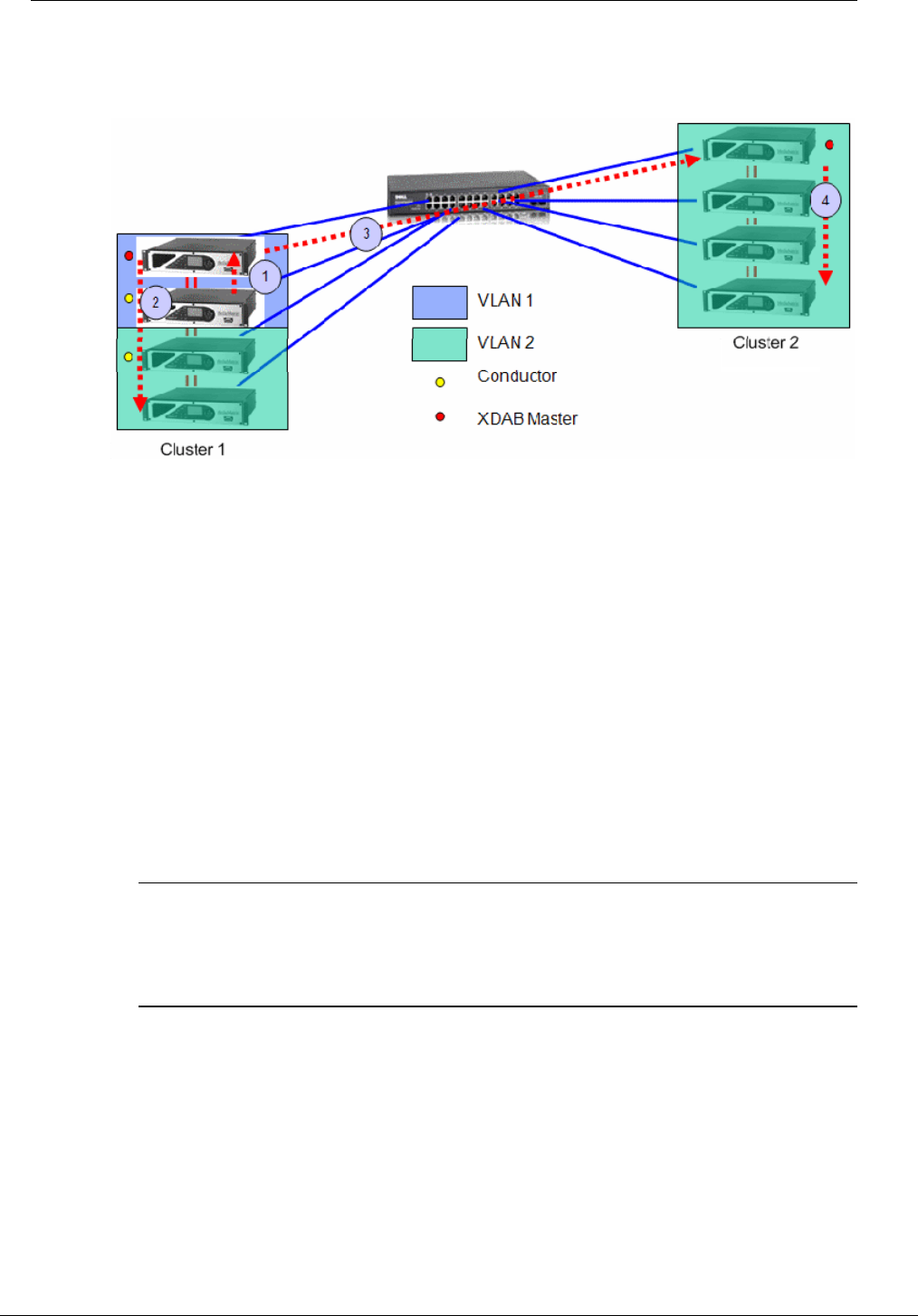 The XDAB master in Cluster 1 is therefore a CobraNet performer in VLAN 1.