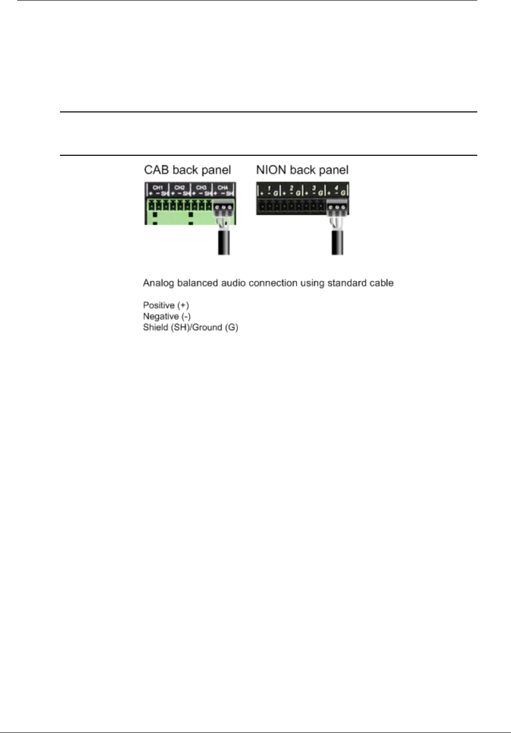Each audio connection on the CAB and NION products is a single, three-wire, balanced