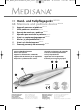 85150_MP820_Mani-Pediku?re_West_08.03.:Maniküre/Pediküre 21.03.2013 7:21 Uhr DEUTSCH Vielen Dank für Ihr Vertrauen und herzlichen Glückwunsch! Mit dem Hand- und Fußpflegegerät haben Sie ein Qualitätsprodukt von MEDISANA erworben. Damit Sie den gewünschten Erfolg erzielen und recht lange Freude an Ihrem MEDISANA MP 820 haben, empfehlen wir Ihnen, die nachstehenden Hinweise zum Gebrauch und zur Pflege sorgfältig zu lesen.