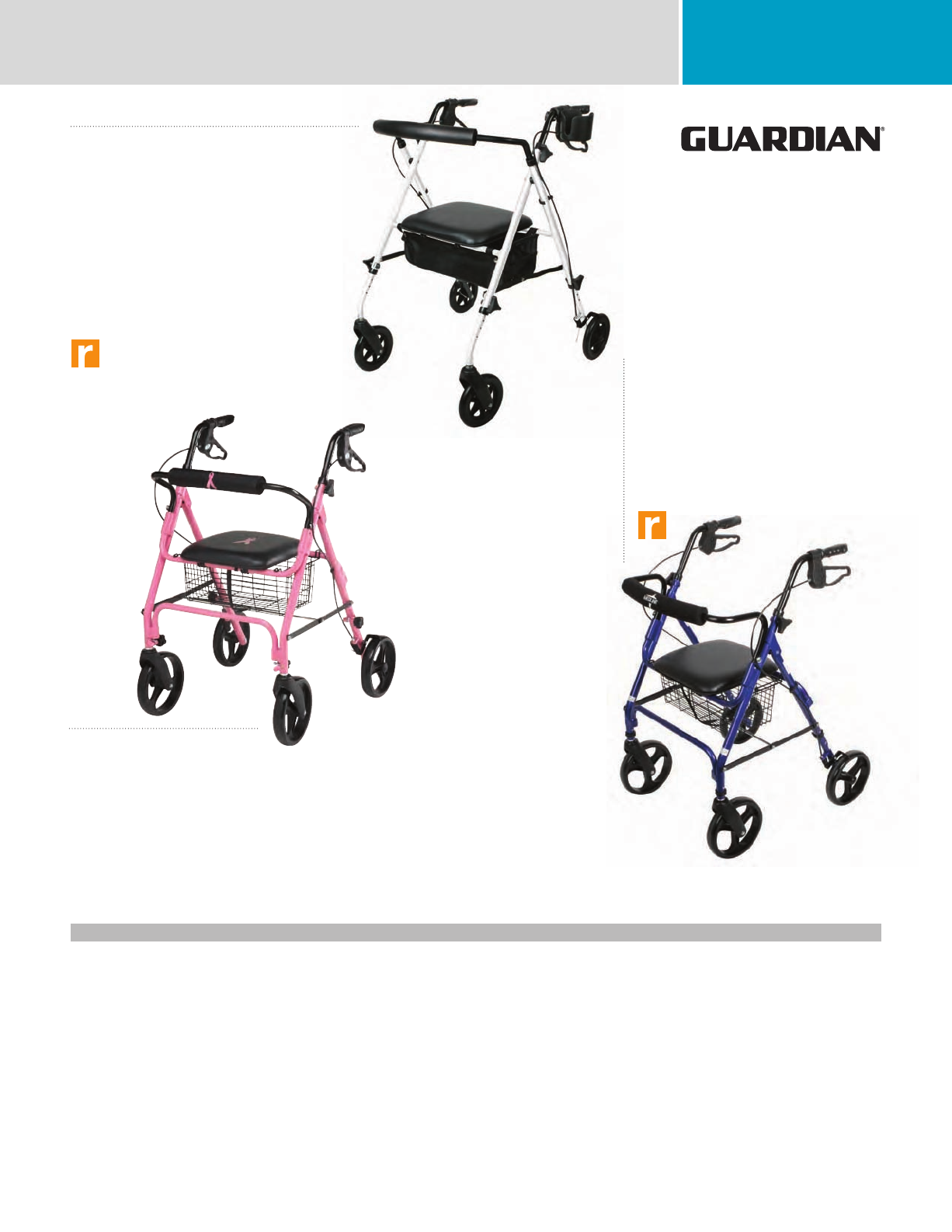MDS86835W Luxe Rollator White 300 (136) 7 (18) 19 (48) 19-23.5 (48-60) 30.5-37.5 (77-95) 15.5 (7) Each