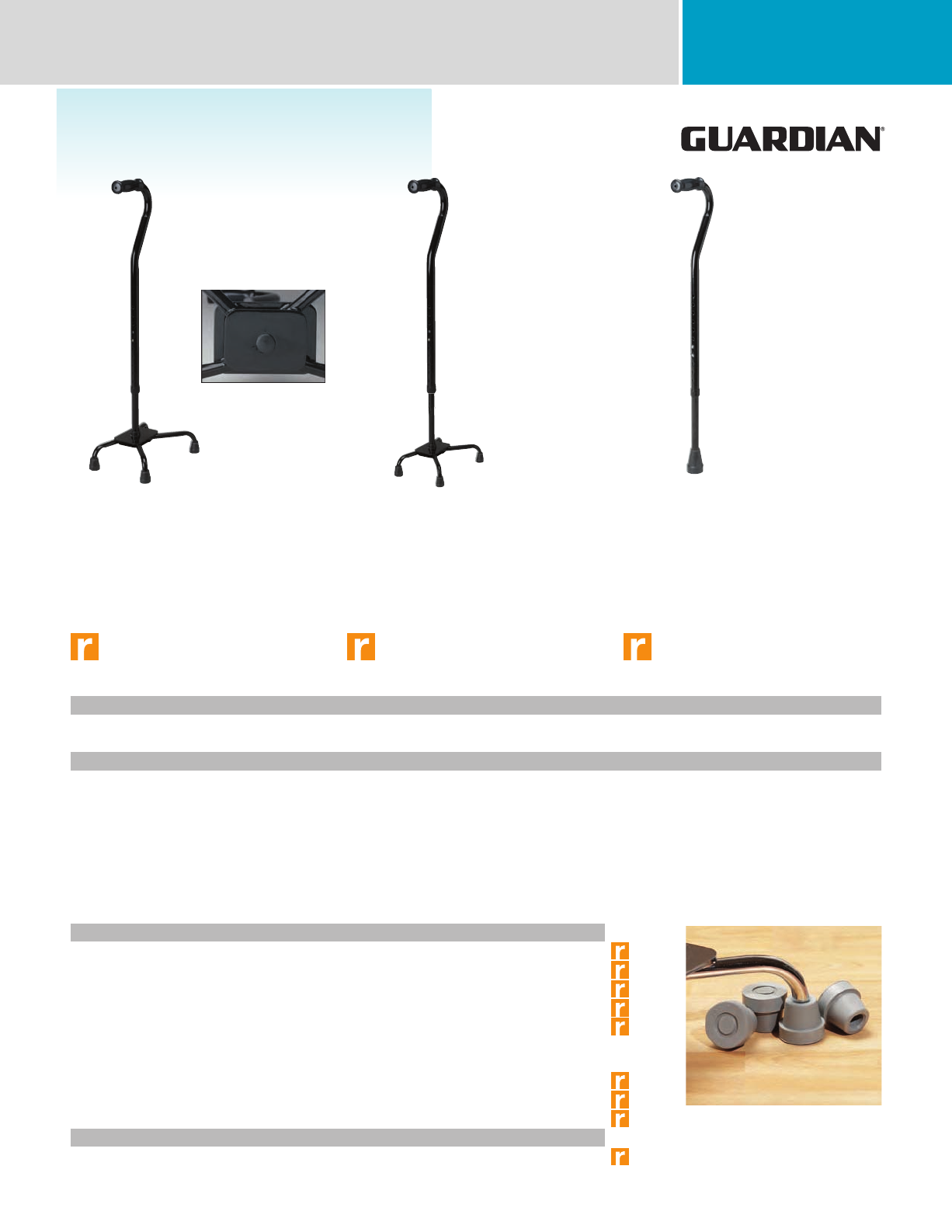 G02172 Tip, Quad Cane 5/8 (1.6) Gray 8 set/cs