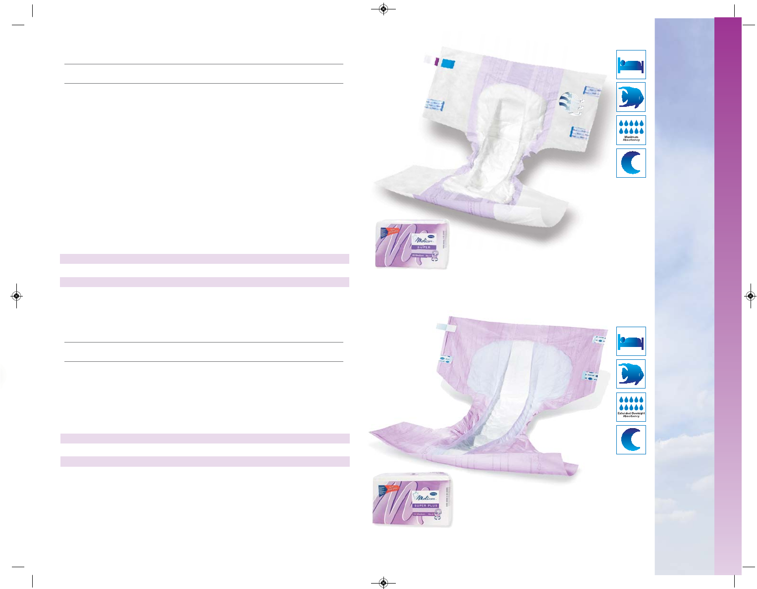 • High-capacity core holds 1200cc more than MoliCare Super briefs
