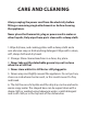 CARE AND CLEANING Always unplug the power cord from the electricity before fitting or removing single attachments or before cleaning the appliance. Never place the thermostat, plug or power cord in water or other liquids; Only wipe these parts clean with a damp cloth. 1. Wipe lid, base, and cooking plates with a damp cloth and a non-abrasive soap or dish washing detergent. Wipe with a clean, soft, damp cloth and dry towel. 2. Storage: Store cleaned machine in a clean, dry place. 3.