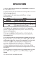 OPERATION 1. Turn On by turning the dial on the Temperature Controller (G) from the “OFF” position 2. Continue turning the knob to the desire temperature based on the food being prepared. 3. Please refer to the table below with different settings: Function Settings Settings Function Warm - 250F Low Heat - to keep food warm 250F- 350F Medium Heat - Cooking foods thoroughly 350F - 400F High Heat - For quick cooking and sealing the juices 450F Super Heat - To brown foods quickly 4.