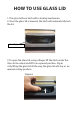HOW TO USE GLASS LID 1. The glass lid has a latch with a locking mechanism. 2. Once the glass lid is lowered, the latch will automatically lock the lid. closed position 3. To open the Glass lid, using a finger, lift the latch under the Glass lid to unlock and lift to an upward position. (Fig.6) 4. By lifting the glass lid all the way, the glass lid will stay in an upward resting position.
