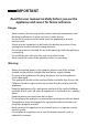 IMPORTANT Read this user manual carefully before you use the appliance and save it for future reference. Danger • • • • • • Never immerse the housing, which contains electrical components and the heating elements, in water nor rinse it under the tap. Do not let any water or other liquid enter the appliance to prevent electric shock. Always put the ingredients to be fried in the basket, to prevent it from coming into contact with the heating elements.