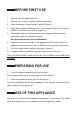• • • • • • Do not place the appliance against a wall or against other appliances. Leave at least 12 inches of free space on the back and sides and 12 inches free space above the appliance. Do not place anything on top of the appliance. Do not use this product for any other purpose than described in this manual. Do not let the appliance operate unattended. During hot air frying, hot steam is released through the air outlet openings.