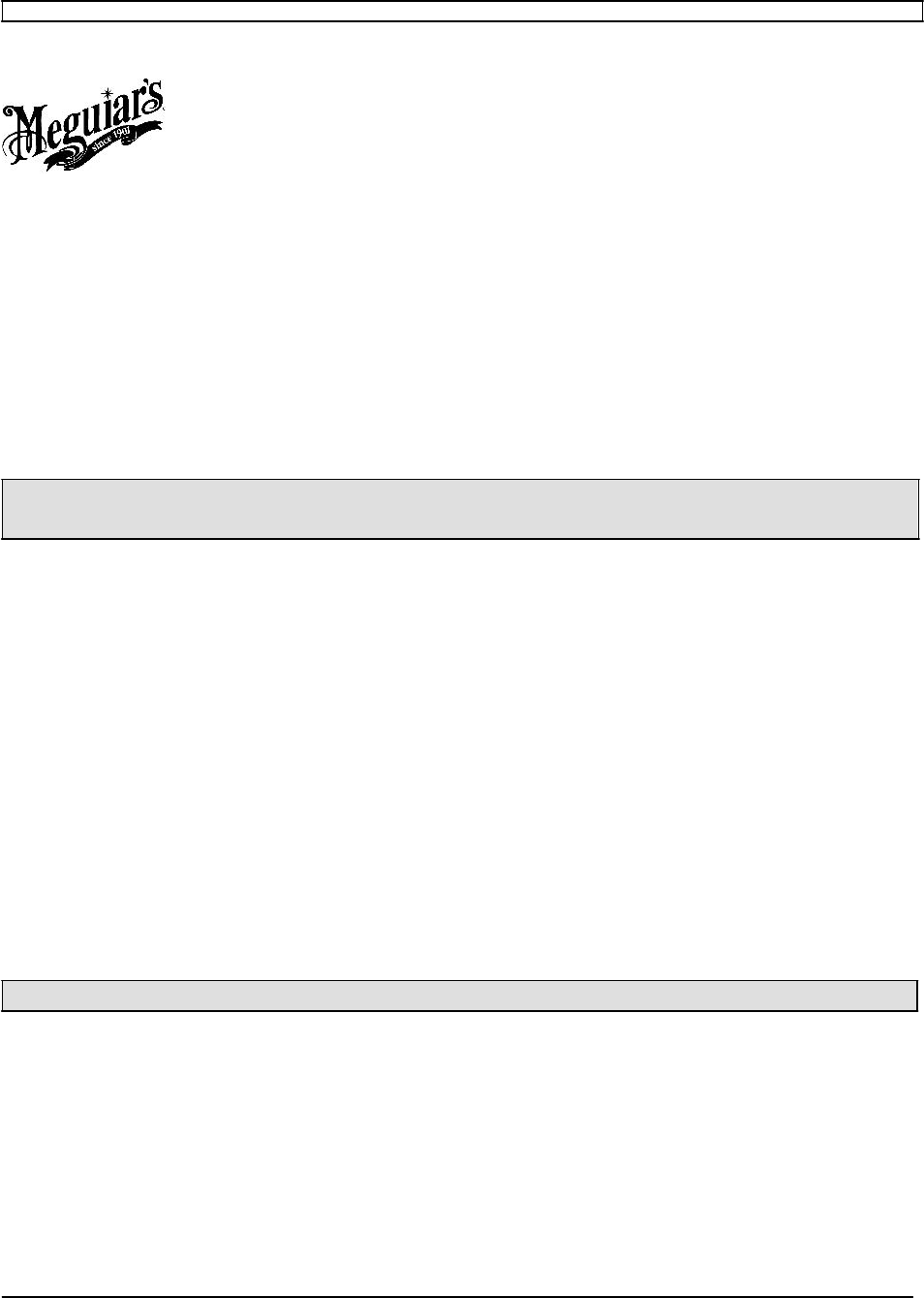 G123, PlastX (18-167B): G12306, G12310 Veiligheidsinformatieblad Copyright, 2012, Meguiar's, Inc. Alle rechten voorbehouden. Kopiëren en/of downloaden van deze informatie met het doel van juist gebruik van het Meguiar's, Inc. product is enkel toegestaan als: (1) de informatie volledig is gekopieerd zonder wijzigingen tenzij voorafgaand schriftelijk overeengekomen met Meguiar's, Inc.