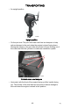 • Horizontal, with the front of the engine facing up (tiller handle facing