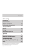 Contents Before driving Introduction 2 Instrumentation 4 Controls and features 20 Seating and safety restraints 89 Starting and driving Starting 120 Driving 127 Roadside emergencies 150 Servicing Maintenance and care 171 Capacities and specifications 230 Customer assistance 236 Reporting safety defects (U. S.