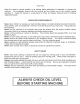 LUBRICATION & ENGINE START UP FOR INFORMATION ABOUT OIL AND FUEL, STARTING AND STOPPING PROCEDURES, RECOMMENDED MAINTENANCE, SERVICE, STORAGE AND ENGINE WARRANTY INFORMATION, REFER TO THE ENGINE OWNERS MANUAL. THE ENGINE HAS BEEN SHIPPED DRY. BE SURE TO SERVICE THE ENGINE ACCORDING TO THE ENGINE OWNERS MANUAL PRIOR TO STARTING. FAILURE TO DO SO CAN RESULT IN DAMAGE NOT WARRANTIED BY THE ENGINE MANUFACTURER. WARNING: Do not fil inheritances 12:neh from the top of the fis! tank (3 fervent spills and io.