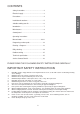CONTENTS Safety instructions ............................................. 2 Electrical supply ................................................ 3 Installation instructions ...................................... 5 Suitable cooking utensils ................................... 6 Introduction ........................................................ 7 ENGLISH Precautions ....................................................... 4 Main features .....................................................