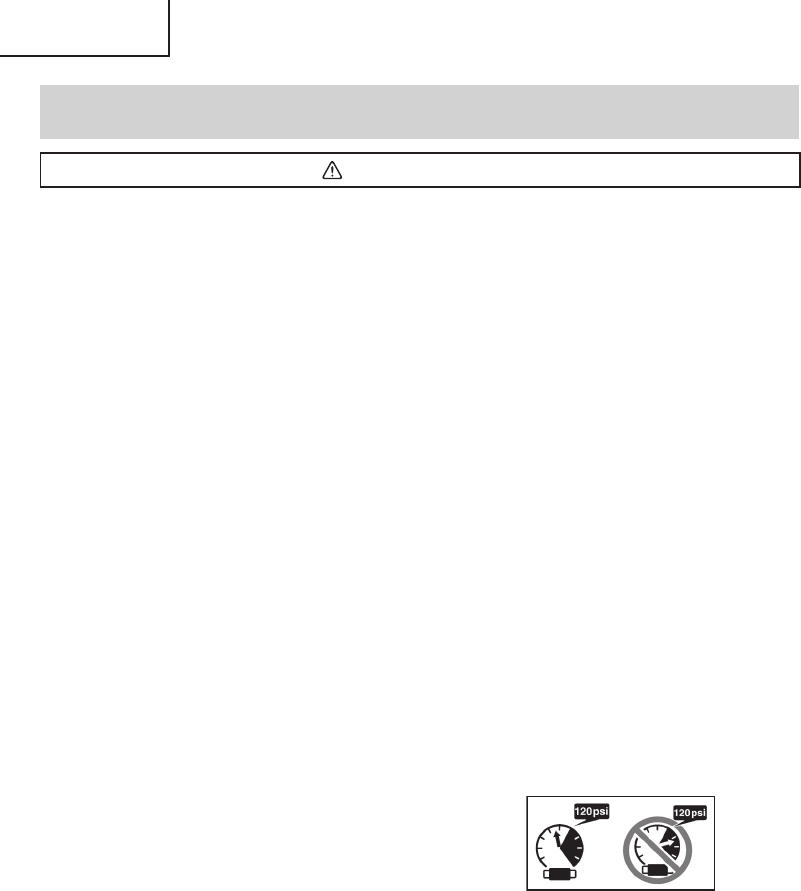 NE PAS DÉPASSER 120 psi (8.3 bars 8.5 kgf/cm