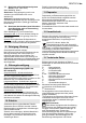 en ENGLISH screwdriver to firmly tighten the safety screw inside the drill chuck (if applicable / model-specific). Caution left-handed thread ! (see Section 8.7.) 6.1 Assembly of additional handle (2) For safety reasons, always use the additional handle supplied. Open the clamping ring by turning the additional handle (2) counter-clockwise. Push the additional handle onto the collar of the machine. Slide the additional handle far enough forward so that it can be turned.