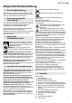 SUOMI fi 6. Käyttöönotto 6.1 Lisäkahvan asennus (1) (varustelukohtainen) Käytä turvallisuussyistä aina oheista lisäkahvaa. Avaa lukkorengas kiertämällä lisäkahvasta (1) vasemmalle. Työnnä lisäkahva koneen karankaulalle. Kiristä lisäkahva halumaasi kulmaan kunkin käyttötilanteen mukaan. 7. Käyttö Koneen monitoiminen valvontajärjestelmä Jos kone kytkeytyy itsestään pois päältä, elektroniikka on aktivoinut itsesuojaustilan. Varoitusääni (jatkuva piippausääni) kuuluu.