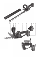 SVENSKA sv Om du får läckande batterivätska på huden, spola direkt med rikligt med vatten. Får du batterivätska i ögonen, skölj med rent vatten och sök omedelbart läkarvård! 5. Översikt Se sid. 2. 1 Svärdskydd 2 Stötskydd med grenmatning 3 Handskydd 4 Bygelhandtag 5 Strömbrytare (säkerhetsbrytare med tvåhandsmanövrering) 6 Klippkniv 7 Strömbrytare (säkerhetsbrytare med tvåhandsmanövrering) 8 Knapp för att lossa batteriet 9 Knapp till laddindikeringen 10 Ladd- och signalindikering 11 Batteri 6.