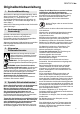 fi SUOMI Älä käytä viallisia tai vääntyneitä akkuja! Älä avaa akkuja! Älä koske akun koskettimiin äläkä oikosulje niitä! Viallisesta Li-Ion-akusta voi valua ulos lievästi hapanta, palonarkaa nestettä! Jos akkunestettä valuu ulos ja sitä joutuu iholle, huuhtele heti runsaalla vedellä. Jos akkunestettä joutuu silmiin, pese ne puhtaalla vedellä ja hakeudu välittömästi lääkärin hoitoon! Pikapysäytyksen ansioista leikkuuterä pysähtyy 0,3 sekunnin sisällä.