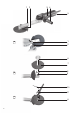 ru РУССКИЙ воздухом, не выколачивайте и не сметайте с нее пыль. 5. Обзор См. с. 2. 1 Кнопка перестановки защитного кожуха 2 Защитный кожух 3 Переключатель для включения/выключения 4 Дополнительная рукоятка/дополнительная рукоятка с гашением вибраций * 5 Установочное колёсико для регулировки частоты вращения 6 Стяжные гайки 7 Рабочий инструмент 8 Опорный фланец 9 Шпиндель 10 Ключ с внутренним шестигранником. 11 Двухштифтовый ключ * в зависимости от комплектации/не входит в комплект поставки 6.