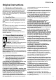 it ITALIANO Livello sonoro classe A tipico: LpA = livello di pressione acustica = livello di potenza sonora LWA KpA, KWA= grado d'incertezza Durante il lavoro è possibile che venga superato il livello di rumorosità di 80 dB(A). Indossare protezioni acustiche! Disturbi elettromagnetici: In caso di disturbi elettromagnetici esterni estremi potrebbero verificarsi temporanee oscillazioni del numero di giri oppure potrebbe attivarsi la protezione antiriavviamento.