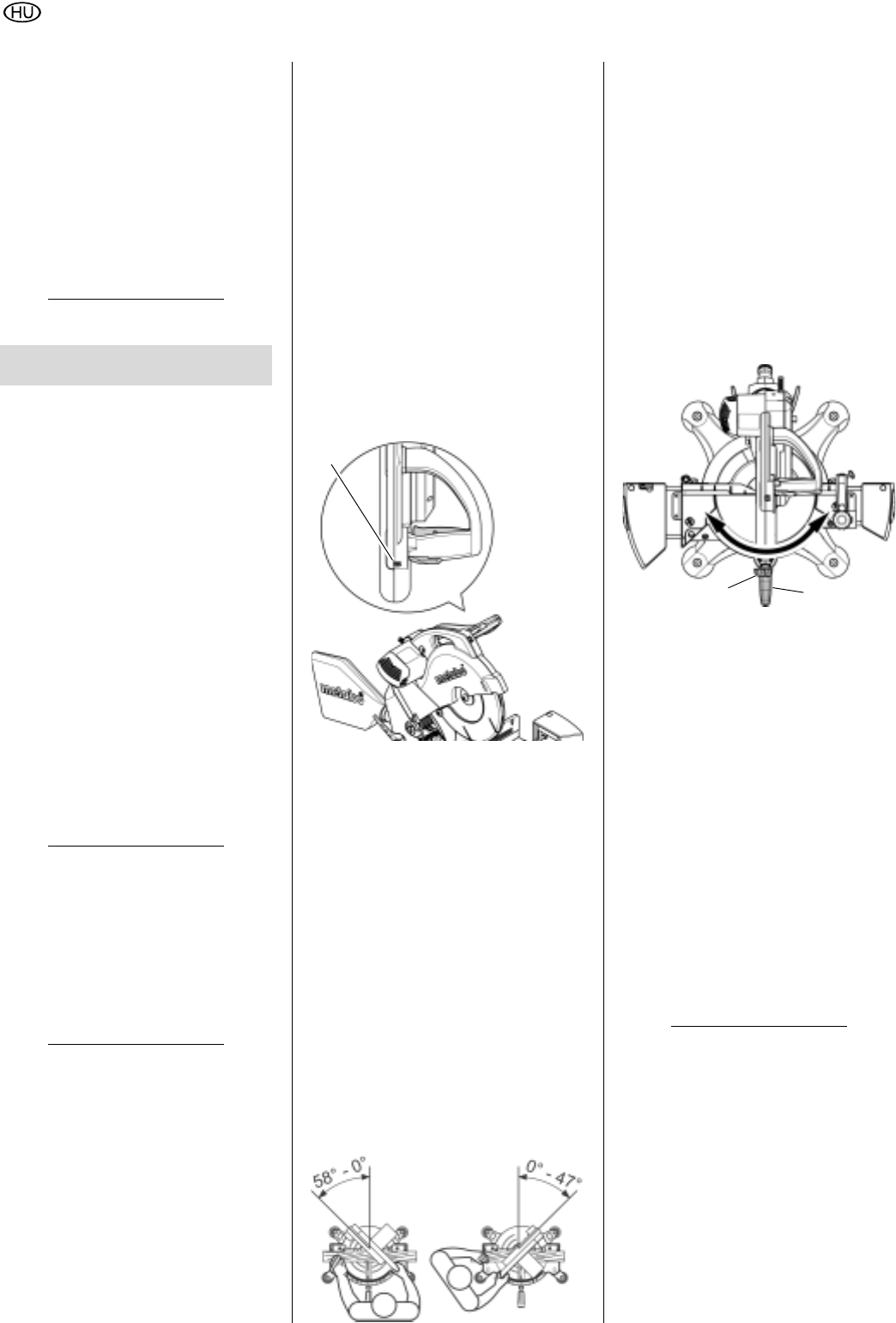 A fűrészfej döntése vagy elfordítása ese-
