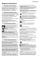en ENGLISH equipment, such as those dust masks that are specially designed to filter out microscopic particles. This also applies to dust from other materials such as some timber types (like oak or beech dust), metals, asbestos. Other known diseases are e.g. allergic reactions, respiratory diseases. Do not let dust enter the body. Observe the relevant guidelines and national regulations for your material, staff, application and place of application (e.g.