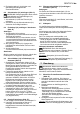 ENGLISH en - if a foreign object has been hit or if the machine has been dropped. Check the machine for damage and have repairs carried out before putting the machine back into operation. - when the machine starts to vibrate excessively. • If the machine starts to vibrate with unusual strength, an immediate check is required: - check for damage; - replace or repair damaged parts; - ensure that all nuts, bolts and screws are tightened.