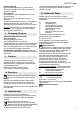ENGLISH en Note: When sanding abrasive material (e.g. plaster, etc.) we recommend connecting a suitable dust extractor. 8. Cleaning, Maintenance Emptying dust collection box (SR 10-23 Intec): Open cleaning flap (8). Empty dust collection box (7). Remove sanding dust filter (9) and knock off dust stuck to filter or remove with brush. During insertion: Ensure that sanding dust filter is inserted into lateral guides. Clean the machine regularly.