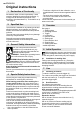 РУССКИЙ ru пользователя с учетом тех или иных значений шума и вибрации. Суммарное значение вибрации (векторная сумма трех направлений) рассчитывается в соответствии со стандартом EN 60745: ah = значение вибрации (шлифование поверхности) Kh = коэффициент погрешности (вибрация) Уровень шума по методу A: LpA = уровень звукового давления LWA = уровень звуковой мощности KpA, KWA = коэффициент погрешности Во время работы уровень шума может превышать 80 дБ(A).