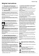 FRANÇAIS fr Niveau sonore typique pondéré A : LpA = niveau de pression acoustique = niveau de puissance sonore LWA KpA, KWA= Incertitude Pendant le fonctionnement, il se peut que le niveau sonore dépasse les 80 db(A).