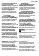 ru РУССКИЙ 4.8 Дополнительные указания по технике безопасности: ПРЕДУПРЕЖДЕНИЕ – Всегда носите защитные очки. В случаях, требующих применения эластичных промежуточных элементов, используйте прокладки, поставляемые вместе с инструментом. Соблюдайте указания изготовителя сменных инструментов или принадлежностей! Берегите круги от ударов и контакта с жирами и смазками! Хранить и применять абразивные круги необходимо аккуратно и в соответствии с предписаниями производителя.