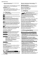 РУССКИЙ ru Результаты измерений получены в соответствии со стандартом EN 60745. Инструмент класса защиты II ~ переменный ток На указанные технические характеристики распространяются допуски, предусмотренные действующими стандартами. Значения эмиссии шума Эти значения позволяют оценивать и сравнивать эмиссию шума различных электроинструментов. В зависимости от условий эксплуатации, состояния электроинструмента или рабочих инструментов фактическая нагрузка может быть выше или ниже.