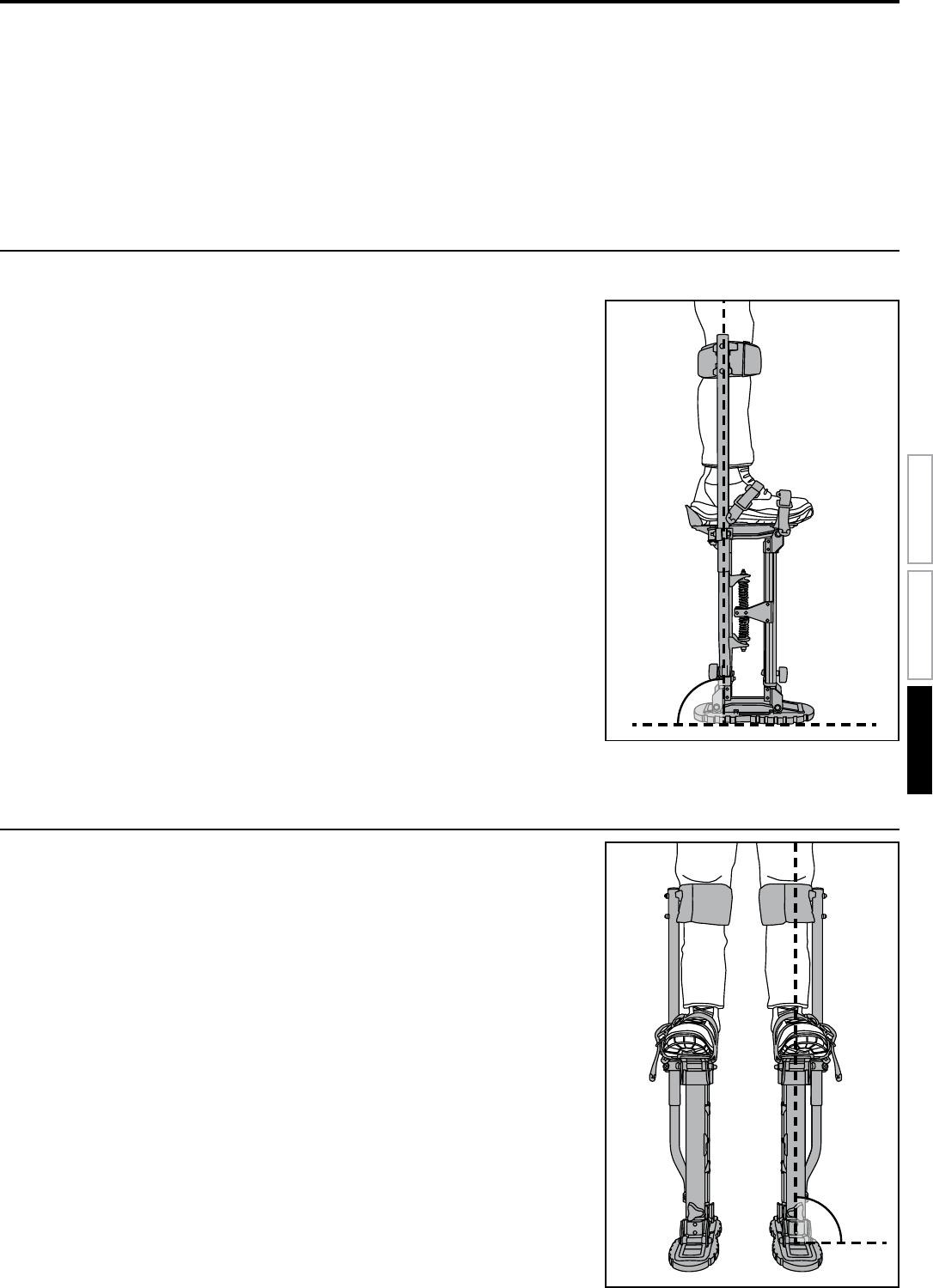 2. Con ayuda de un collega experimentado en el uso de zancos, levántese sobre el segundo zanco, manteniendo las piernas cómodamente