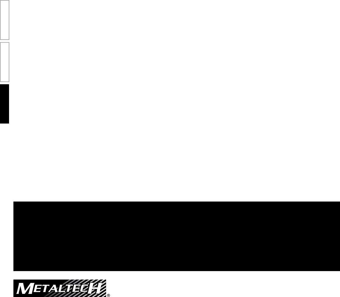 Metaltech-Omega inc. garantiza este producto contra toda defectuosidad material o de fabricación. Devolver este producto a