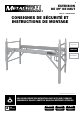 CONSIGNES DE SÉCURITÉ LIRE SOIGNEUSEMENT AVANT D’EFFECTUER LE MONTAGE. LA NON-COMPRÉHENSION ET LE NON-RESPECT DE TOUTES LES RÈGLES DE SÉCURITÉ ET DE TOUTES LES CONSIGNES D’ASSEMBLAGE PEUT ENTRAÎNER DES BLESSURES GRAVES OU MORTELLES. LE MÉTAL EST CONDUCTEUR D’ÉLECTRICITÉ : Ne pas utiliser cet équipement où il pourrait entrer en contact avec une ligne électrique ou une source de courant. ÉVITEZ LES SURCHARGES : Cet échafaudage est conçu pour soutenir une charge maximale de 1000 lb (454 kg).