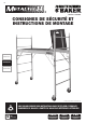 CONSIGNES DE SÉCURITÉ LIRE SOIGNEUSEMENT AVANT D’EFFECTUER LE MONTAGE. LA NON-COMPRÉHENSION ET LE NON-RESPECT DE TOUTES LES RÈGLES DE SÉCURITÉ ET DE TOUTES LES CONSIGNES D’ASSEMBLAGE PEUT ENTRAÎNER DES BLESSURES GRAVES OU MORTELLES. LE MÉTAL EST CONDUCTEUR D’ÉLECTRICITÉ : Ne pas utiliser cet équipement où il pourrait entrer en contact avec une ligne électrique ou une source de courant. ÉVITEZ LES SURCHARGES : Cet échafaudage est conçu pour soutenir une charge maximale de 1100 lb (499 kg).